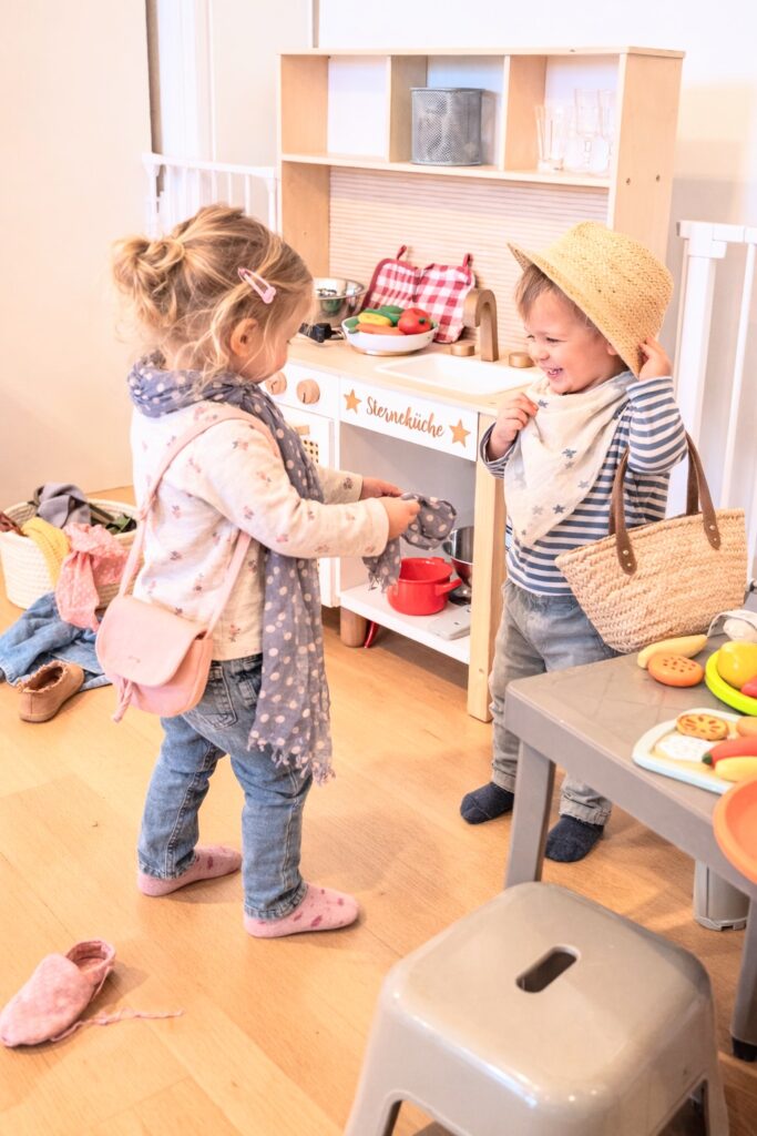 Wir räumen gemeinsam auf, singen Lieder, reimen und tanzen.